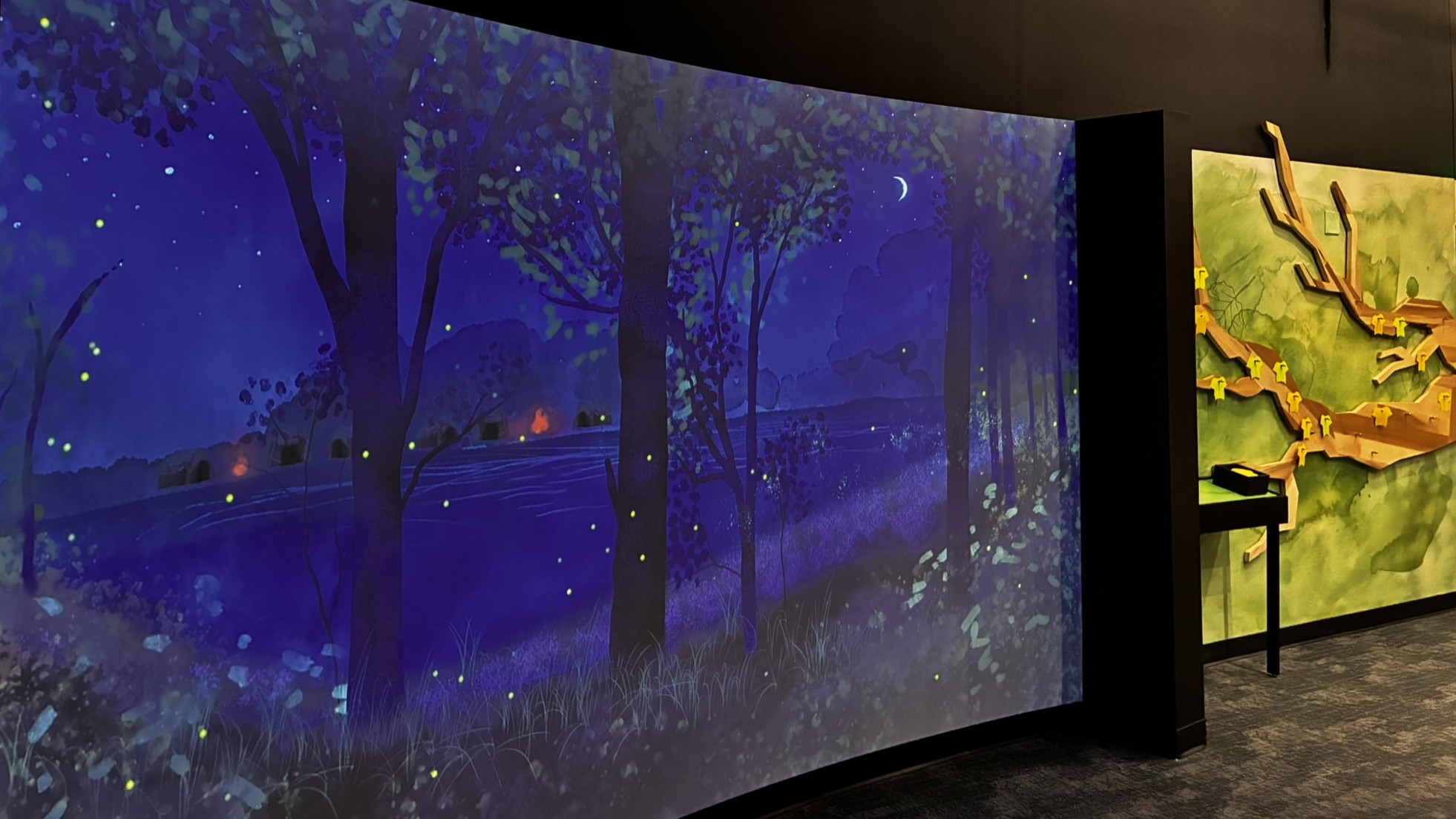 - Power of Place immerses visitors with wall and floor projections and scenic elements showcasing the power of the White River and how it has shaped the land Conner Prairie sits on.